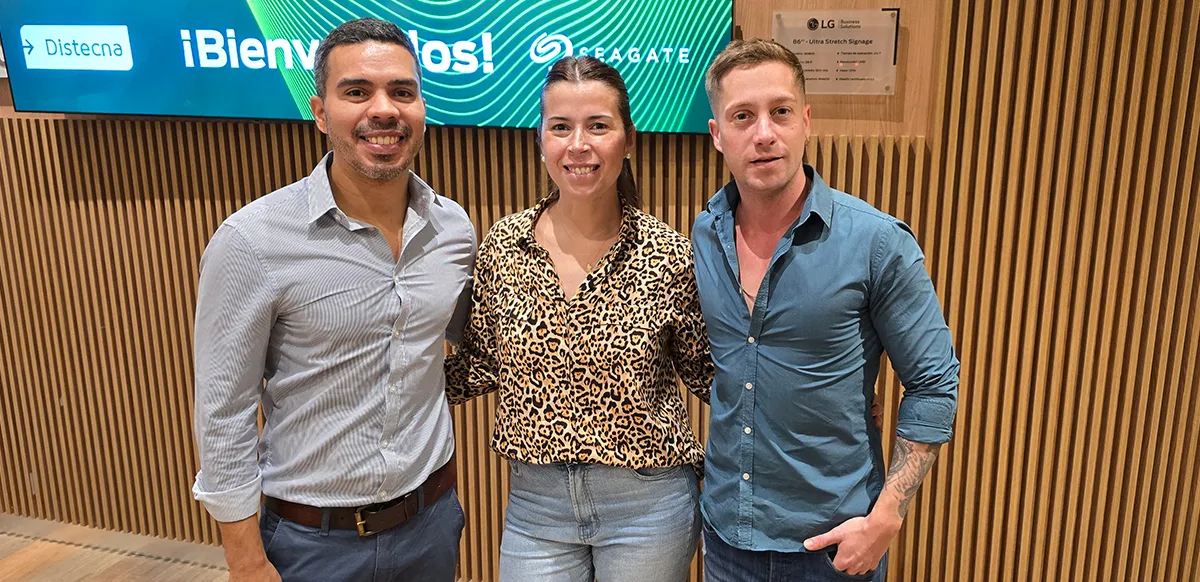 Marcela Franco, de Seagate, junto a Jackson Páez y Lucas Leonardi de Distecna.