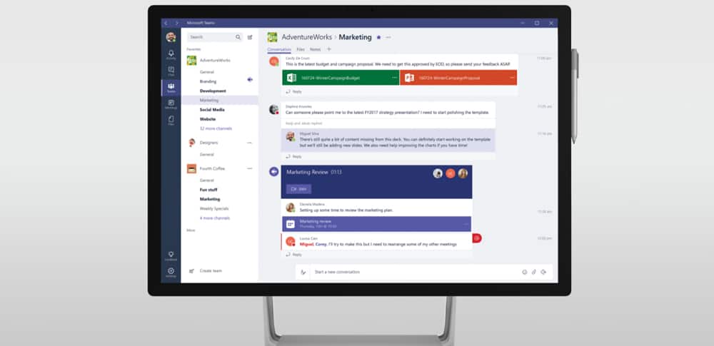 - Microsoft Teams gratis: Esta versión permite enviar mensajes por chat y búsqueda ilimitados; videollamadas y conferencias en vivo para llevar a cabo reuniones, entrevistas, etc.; 10 GB de almacenamiento de archivos de equipo y 2 GB de almacenamiento personal; creación de contenido interconectado con Office Online (Word, Excel, PowerPoint y One Note); más de 140 aplicaciones de negocio (Adobe, Evernote, Trello); capacidad para comunicarse y colaborar de manera remota con cualquier persona dentro y/o fuera de la organización de manera segura.