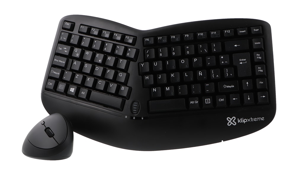 - Diseño ergonómico contorneado con distribución dividida de las teclas que disminuye la presión en los músculos del antebrazo