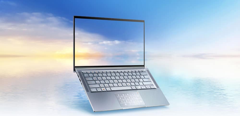 Zenbook 14 cuenta con un color azul utopía y un acabado en metal. Al levantar la tapa se revela una pantalla FHD (1920×1080) IPS NanoEdge de 14 pulgadas que ofrece excelentes ángulos de visión y un color uniforme, ya sea que el usuario esté sentado de frente en el trabajo, o descansando a un lado mirando Netflix.