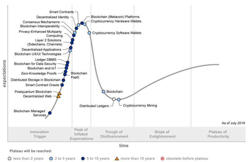 Trough of Disillusionment, el segmento al que hacen referencia los analistas de Gartner, destaca las tecnologías y los mercados en los cuales el interés está disminuyendo dado que las experiencias y los despliegues de esas tecnologías no están surgiendo al ritmo de las expectativas. “Las tecnologías Blockchain aún no han estado a la altura de las expectativas y la mayoría de los proyectos empresariales de Blockchain están estancados en modo de experimentación”, dijo Avivah Litan, analista distinguido y vicepresidente de investigación de Gartner. “Blockchain aún no permite una revolución comercial digital en los ecosistemas empresariales y puede que no sea hasta al menos 2028, cuando Gartner espera que Blockchain se vuelva totalmente escalable técnica y operativamente”.