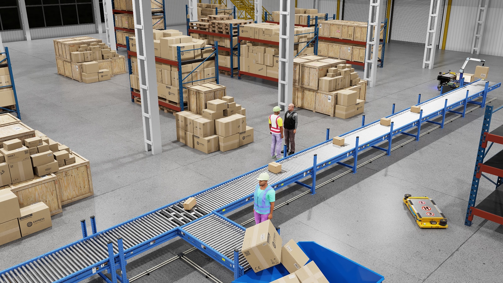Dada la tendencia en la que los robots y humanos trabajan de forma cada vez más estrecha, como robots colaborativos (cobots) o como robots móviles autónomos (AMR), es fundamental que las personas y sus comportamientos comunes se agreguen a la simulación.